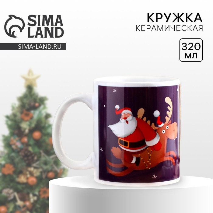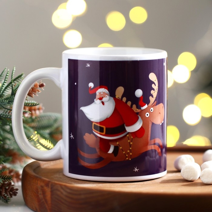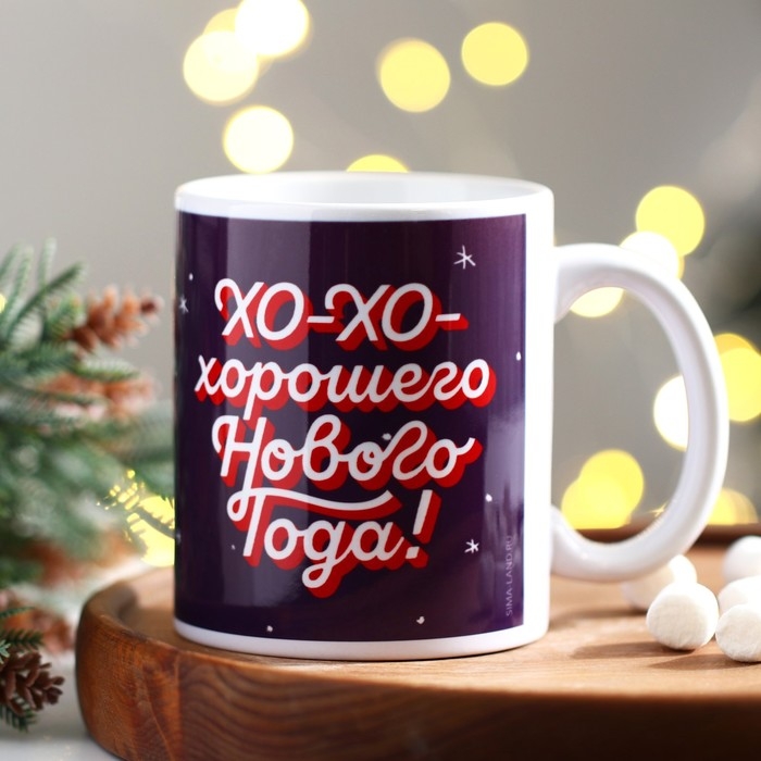 Кружка новогодняя керамическая «ХО-ХО», 320 мл, цвет белый