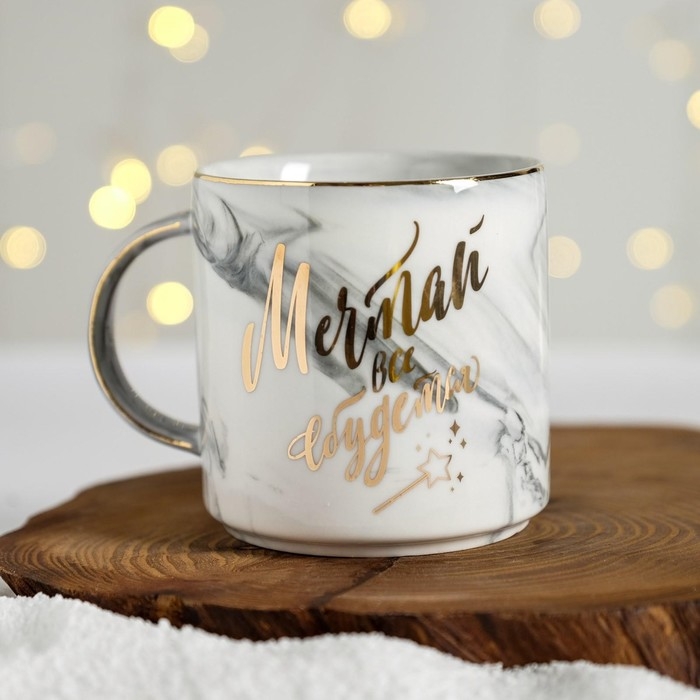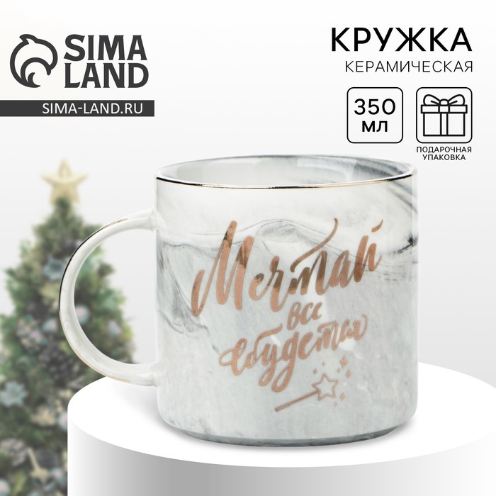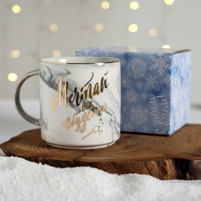Кружка новогодняя керамическая «Мечтай, всё сбудется», 350 мл , цвет серый