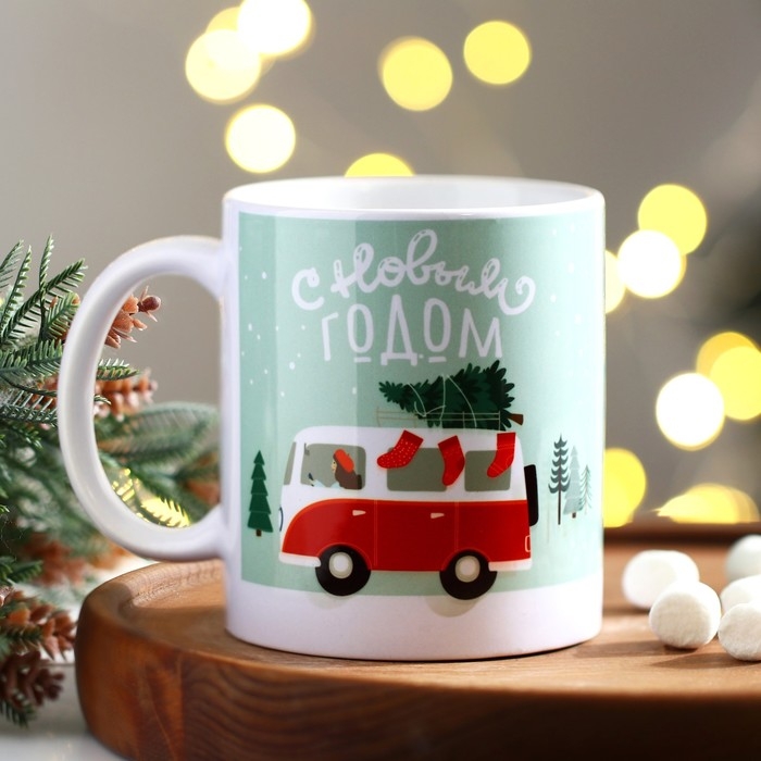 Кружка новогодняя керамическая «Новогодний маршрут», 320 мл, цвет белый