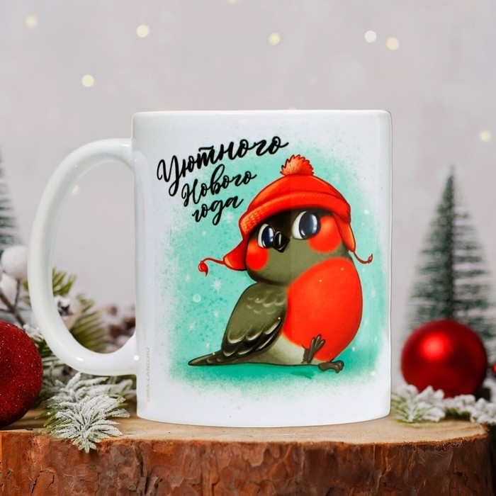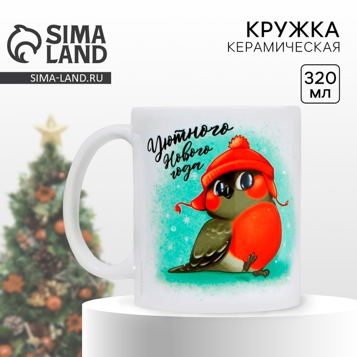 Кружка новогодняя керамическая «Снегирь», 320 мл, цвет белый