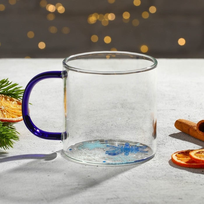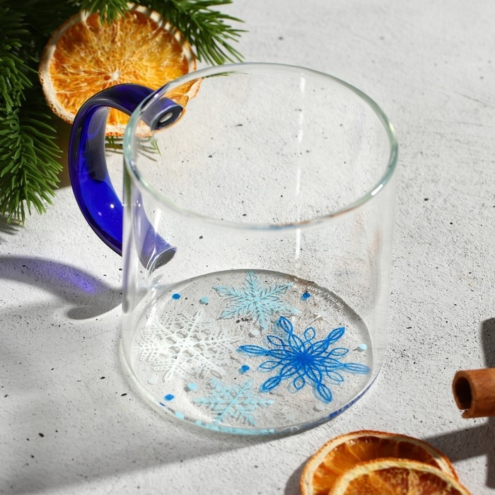 Кружка новогодняя стеклянная «Снежинки», 350 мл