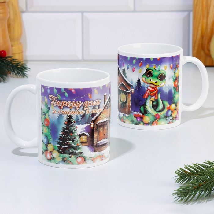 Кружка новогодняя, сублимация "Берегу дом и счатье в нём!" символ года, 320 мл
