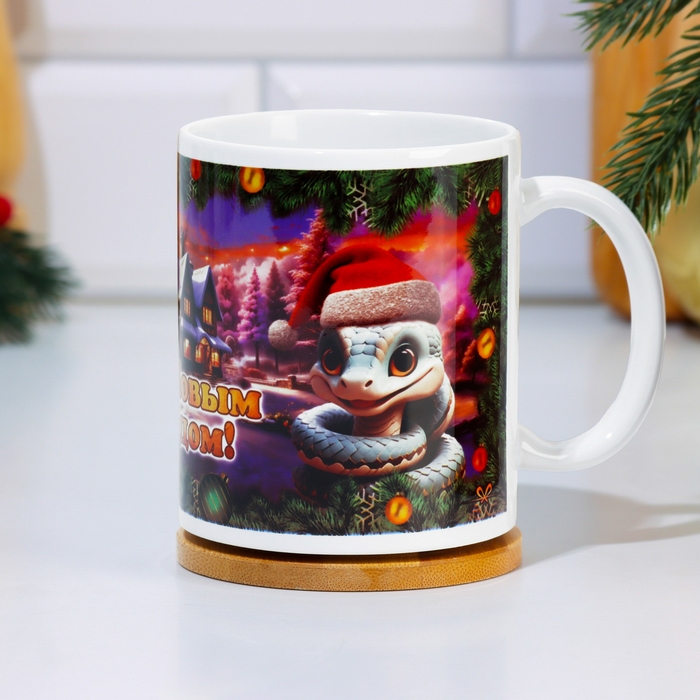 Кружка новогодняя, сублимация "С Новым Годом!" символ года, колпак, 320 мл