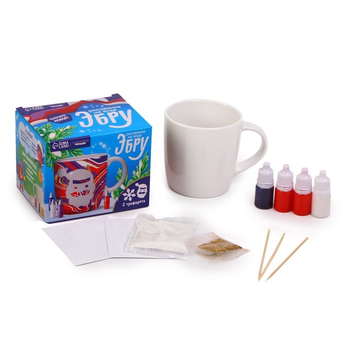 Кружка под раскраску на новый год. Рисование на воде: эбру «Дед Мороз», новогодний набор для творчества