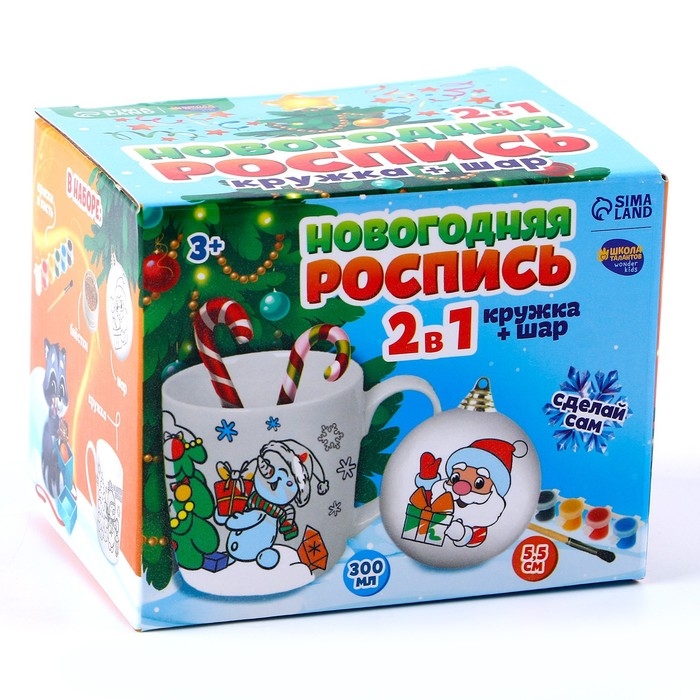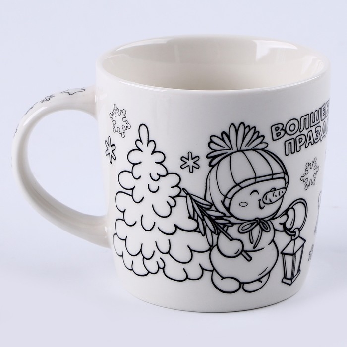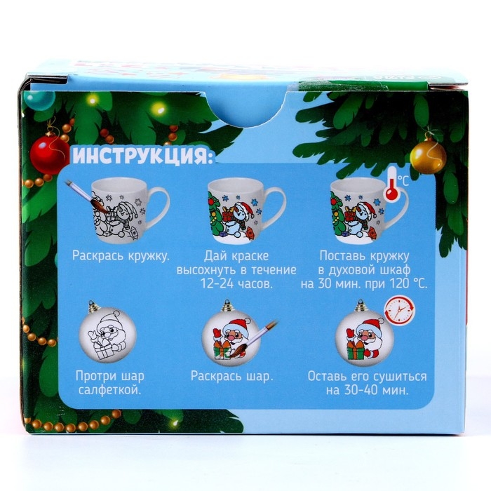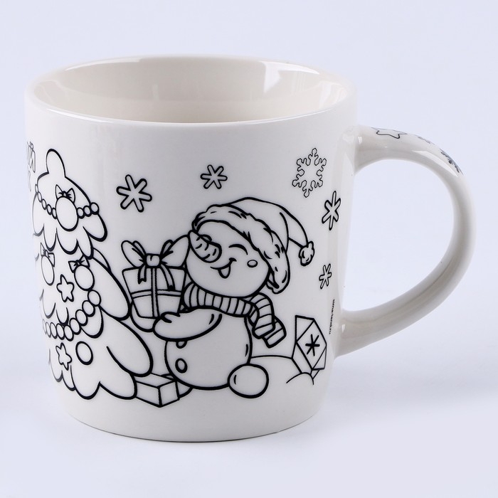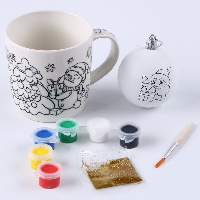 Кружка под раскраску с ёлочным шаром на новый год «Волшебный праздник», 300 мл, новогодний набор для творчества