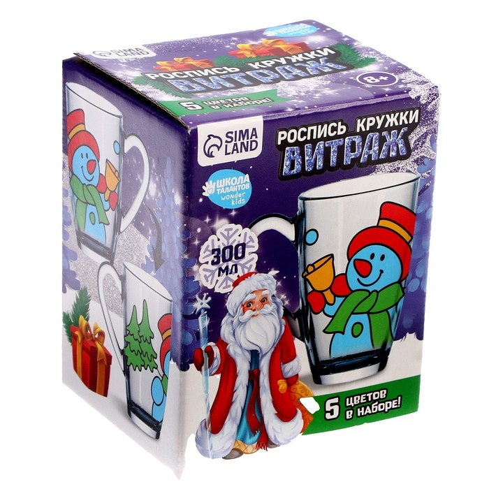 Кружка под раскраску витражными красками на новый год «В ожидании подарков», новогодний набор для творчества