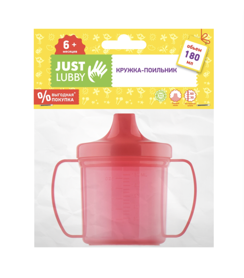 Мягкая упаковка. Кружка-поильник LUBBY Just 180мл с твердым носиком предназначен для малышей в возрасте старше 6 месяцев. Он снабжен удобными боковыми ручками и нестираемой шкалой, которая позволяет точно отмерять необходимый объем жидкости для ребенка. Поильник изготовлен из легкого и небьющегося пищевого пластика, не представляющего проблем в уходе