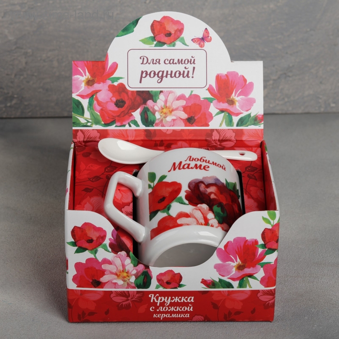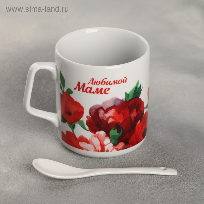 Кружка с ложкой «Любимой маме», 350 мл