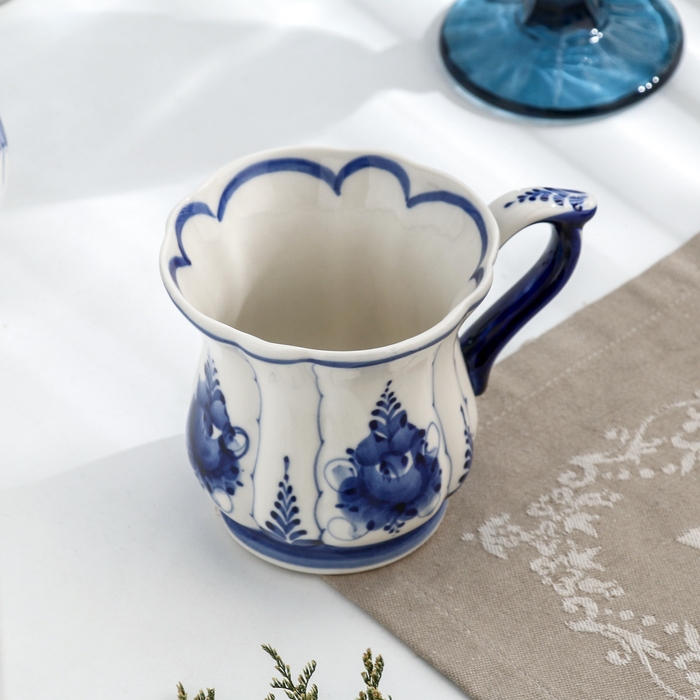 Кружка "Солнышко", малый, гжель, фарфор, 9х7,5 см