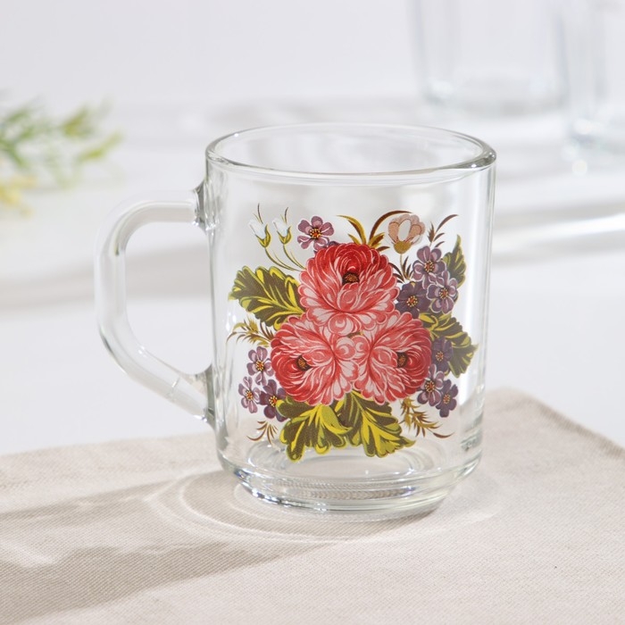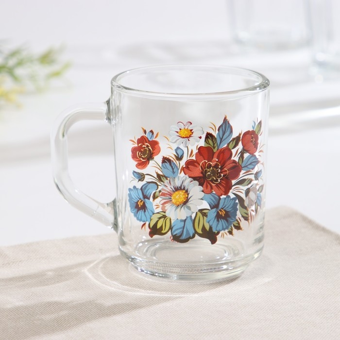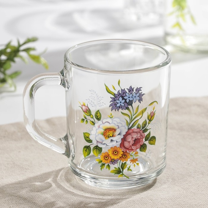 Кружка стеклянная «Букетик», 200 мл, рисунок МИКС