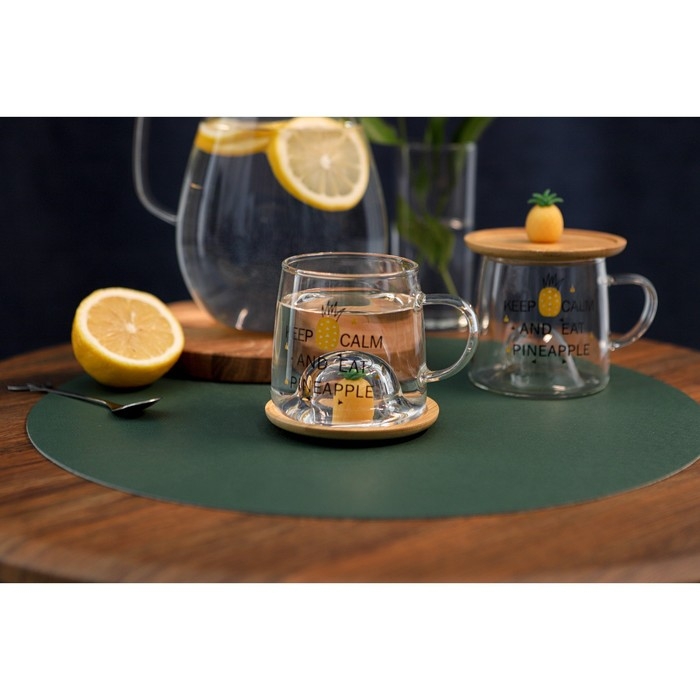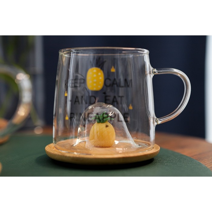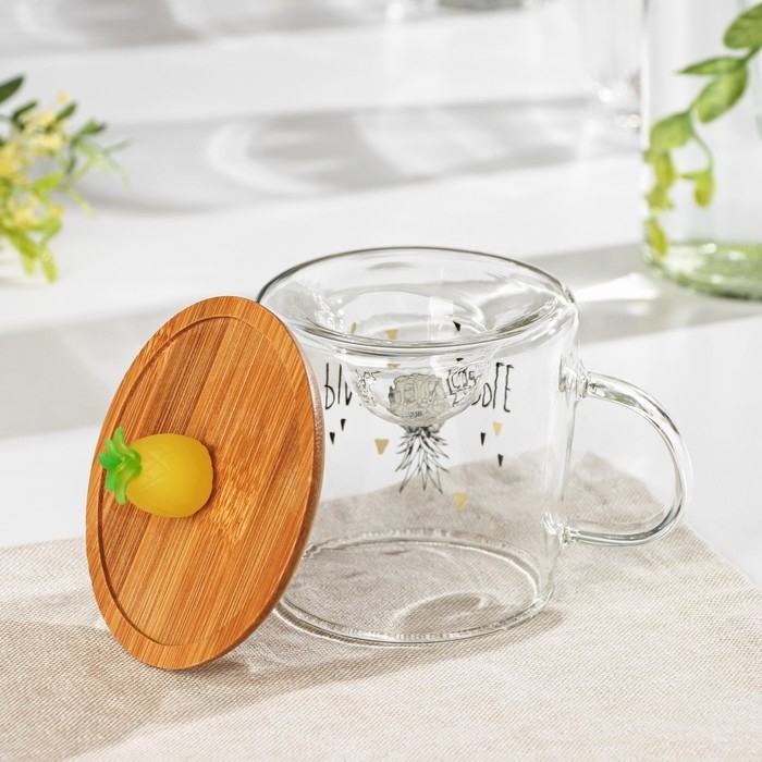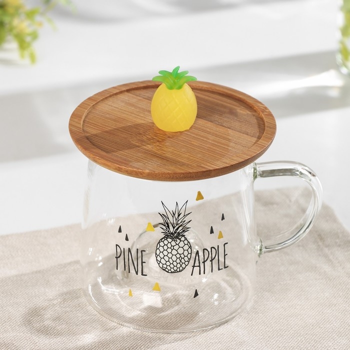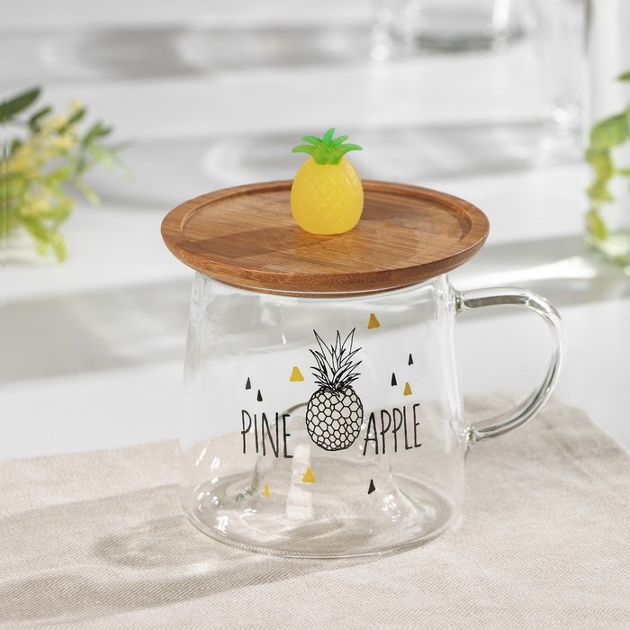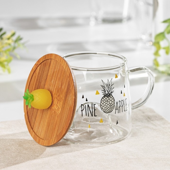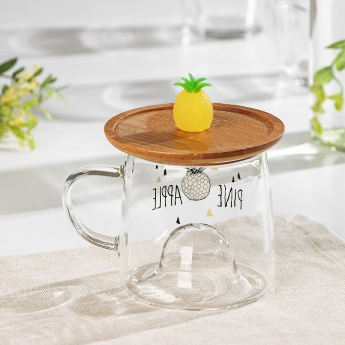 Кружка стеклянная с деревянной крышкой «Ананасик», 300 мл