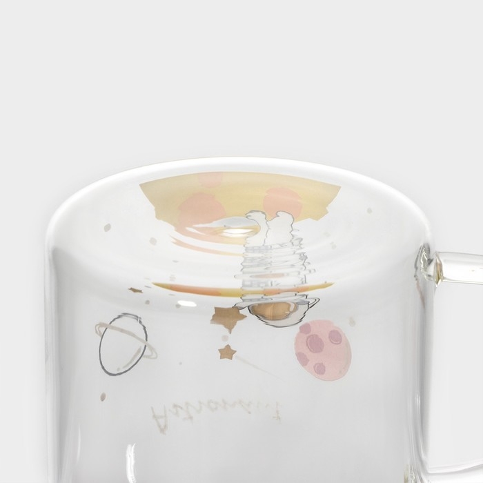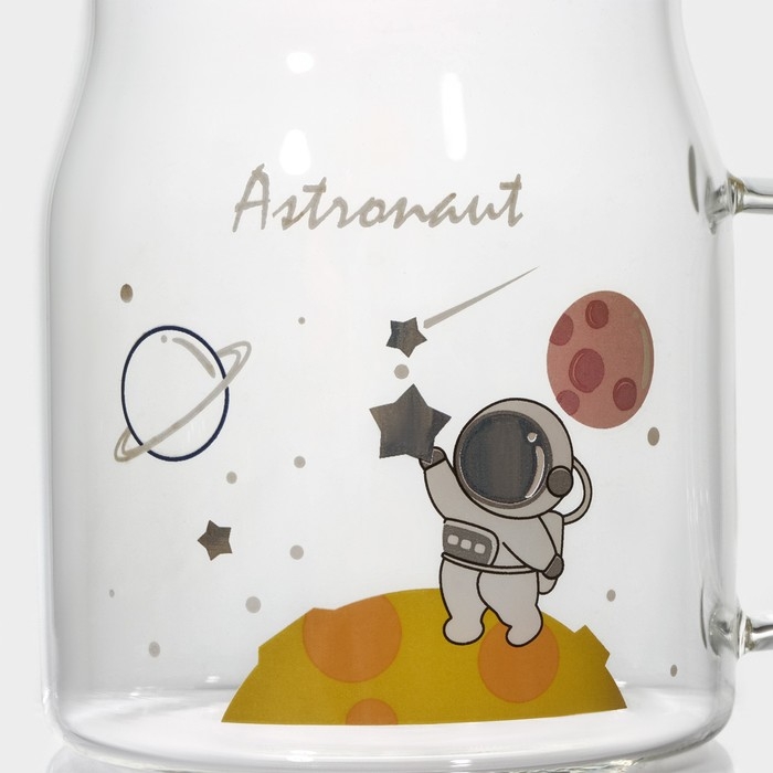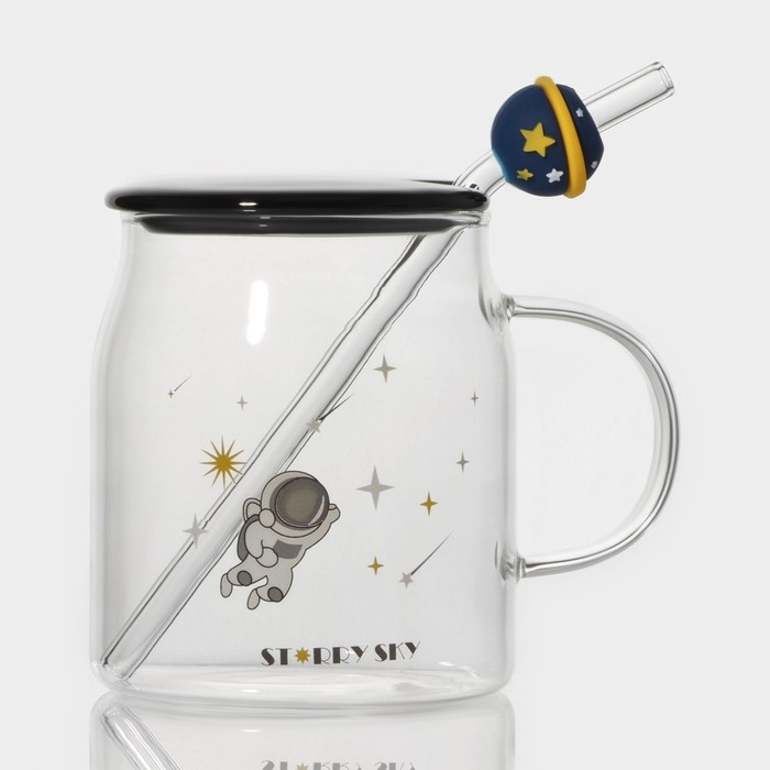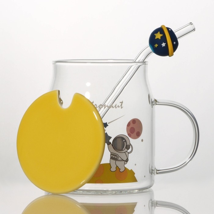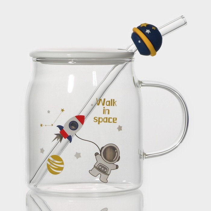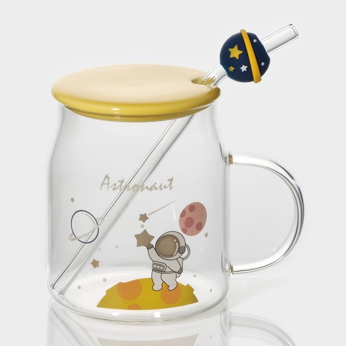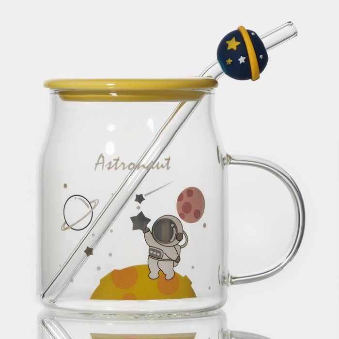 Кружка стеклянная с керамической крышкой и трубочкой «Космос», 500 мл, цвет МИКС