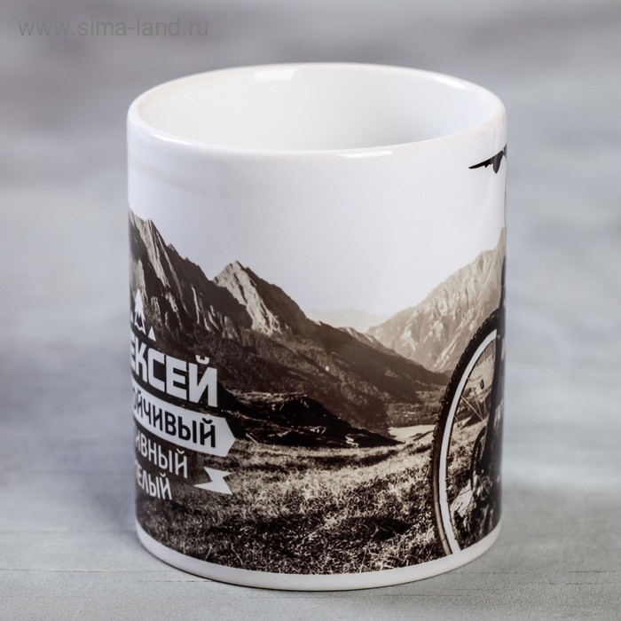 Кружка сублимация "Алексей" велосипед, 320 мл, с нанесением