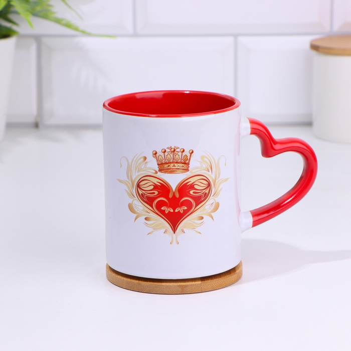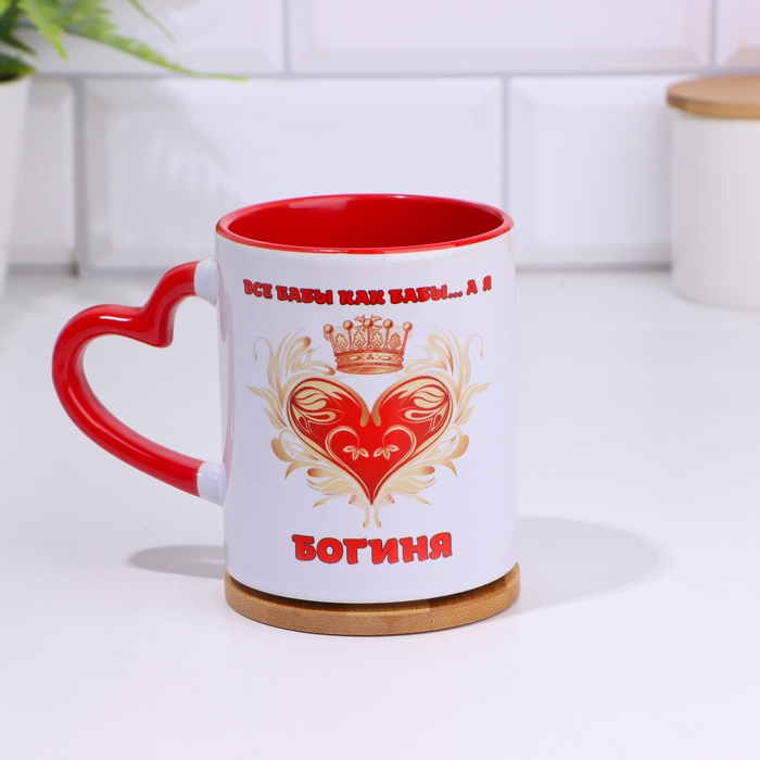Кружка сублимация "Богиня", с фигурной ручкой, дно красного цвета