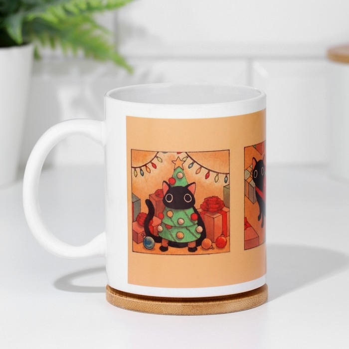 Кружка изготовлена из керамики. Рисунок нанесён методом сублимации, при котором краска проникает в верхний слой изделия, поэтому изображение получается стойким.