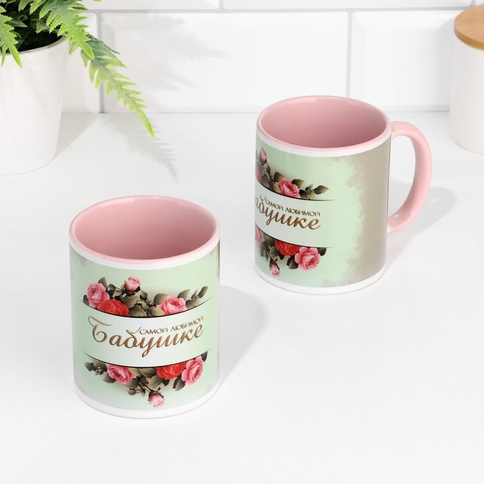 Кружка сублимация "Любимой бабушке", цвет белый, объем 320 мл,дно розового цвета