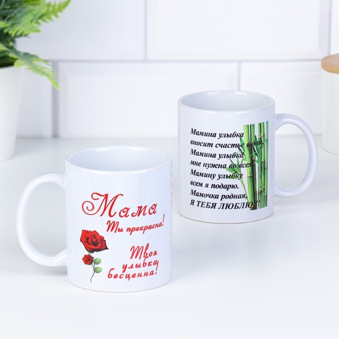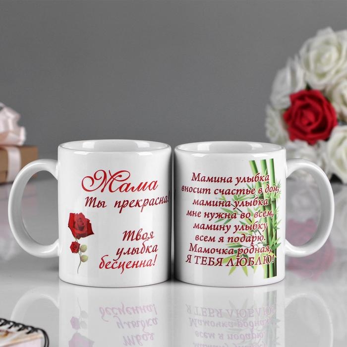Кружка сублимация "Мама ты прекрасна!" с розой, c нанесением