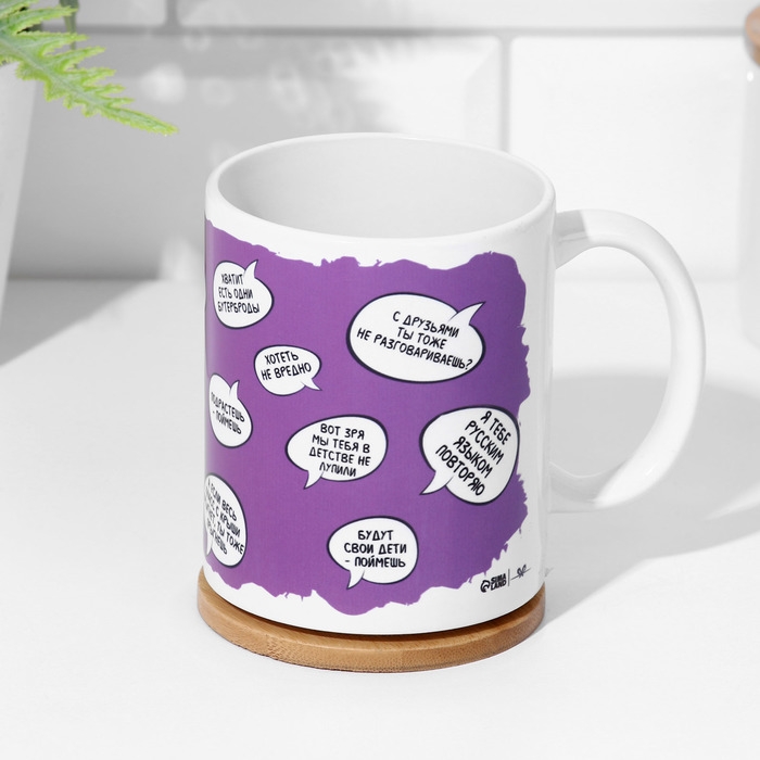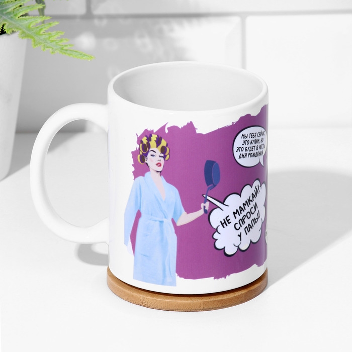 Кружка изготовлена из керамики. Рисунок нанесён методом сублимации, при котором краска проникает в верхний слой изделия, поэтому изображение получается стойким.