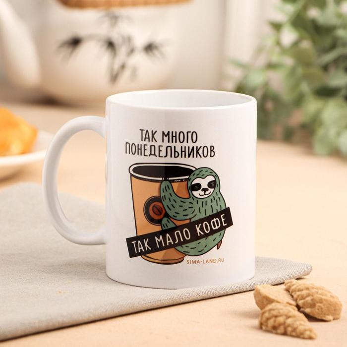 Кружка сублимация "Так много понедельников" ленивец, 320 мл, с нанесением