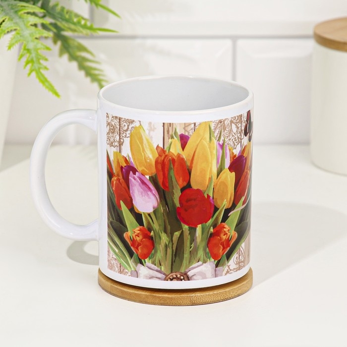 Кружка сублимация "Только для тебя!" букет тюльпанов, 320 мл, с нанесением