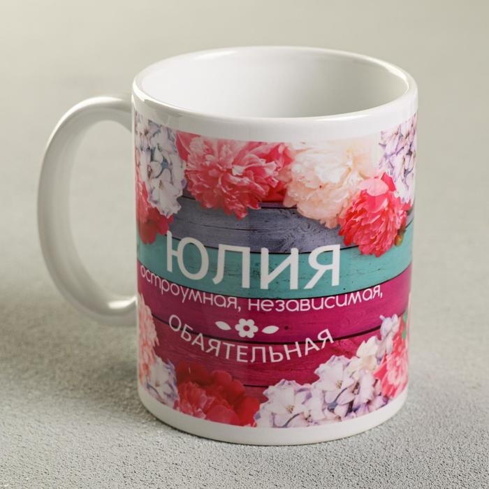 Кружка сублимация "Юлия" цветы, 320 мл, с нанесением