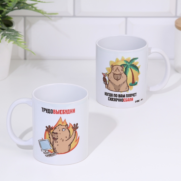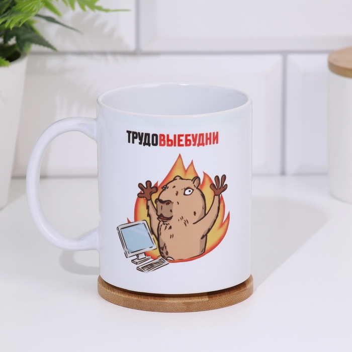Кружка изготовлена из керамики. Рисунок нанесён методом сублимации, при котором краска проникает в верхний слой изделия, поэтому изображение получается стойким.