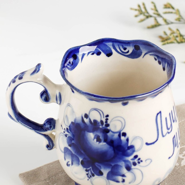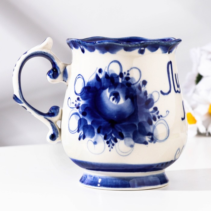 Кружка "Утро. Лучший муж", гжель, фарфор, 11х12 см