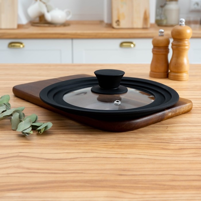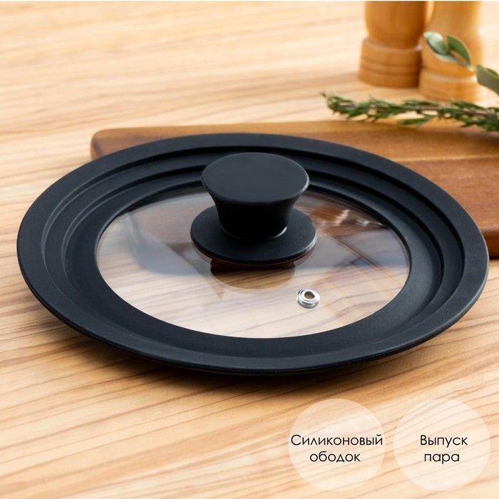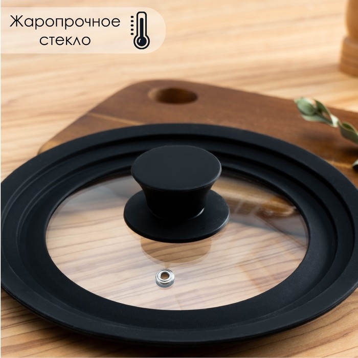 Крышка стеклянная для сковороды и кастрюли Доляна, универсальная с силиконовым, ободком и ручкой, 24/26/28 см, цвет чёрный