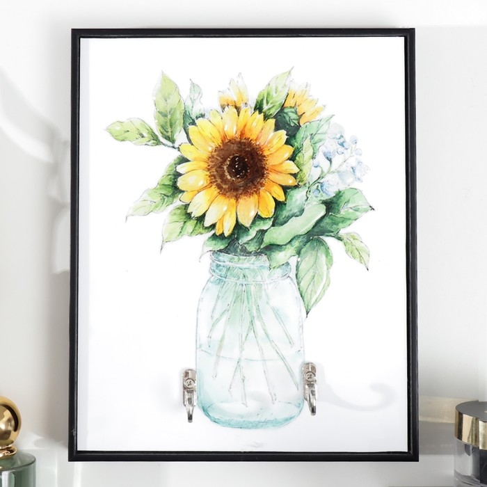 Крючки декоративные 2 крючка "Подсолнухи в стеклянной банке" 19х24 см