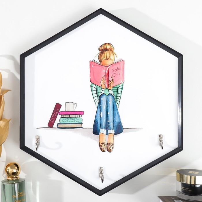 Крючки декоративные 3 крючка "Девушка с книгой" 34х30 см
