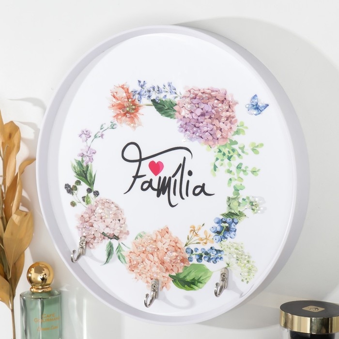 Крючки декоративные 3 крючка "Венок гортензий" 30х30 см