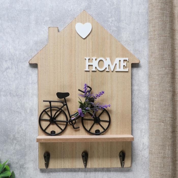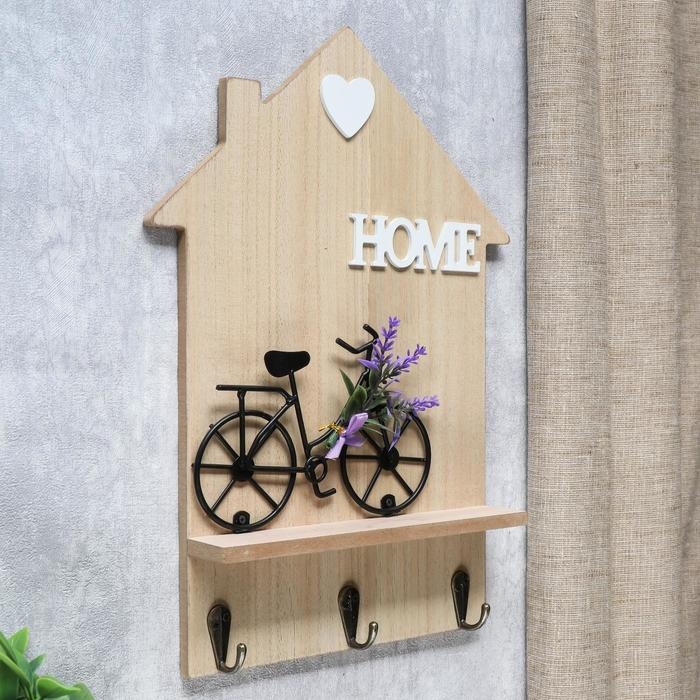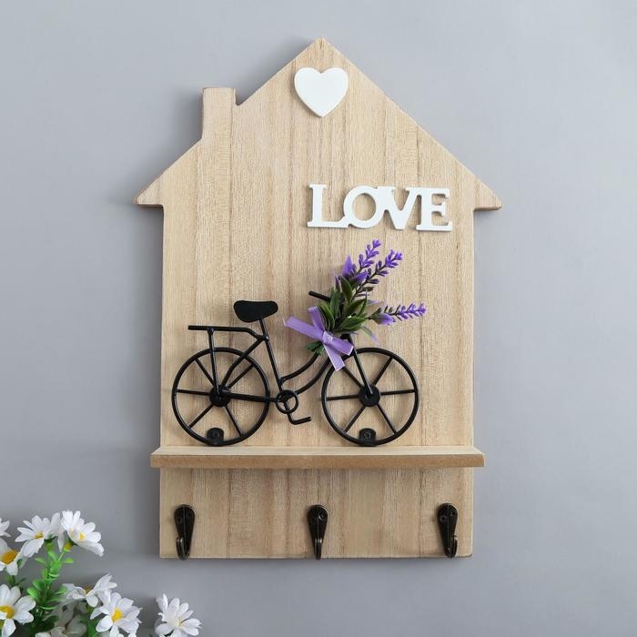 Крючки декоративные дерево "Велосипед с лавандой у дома" 34х24х4,2 см МИКС
