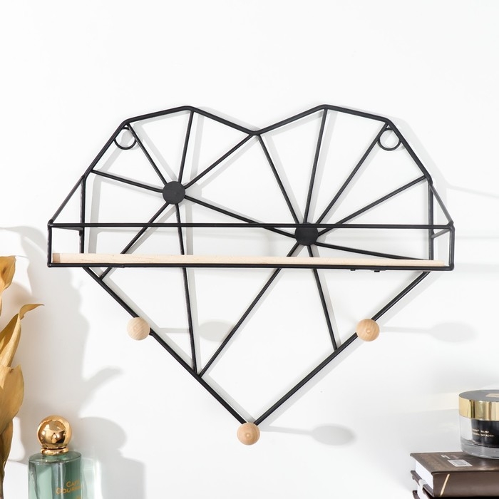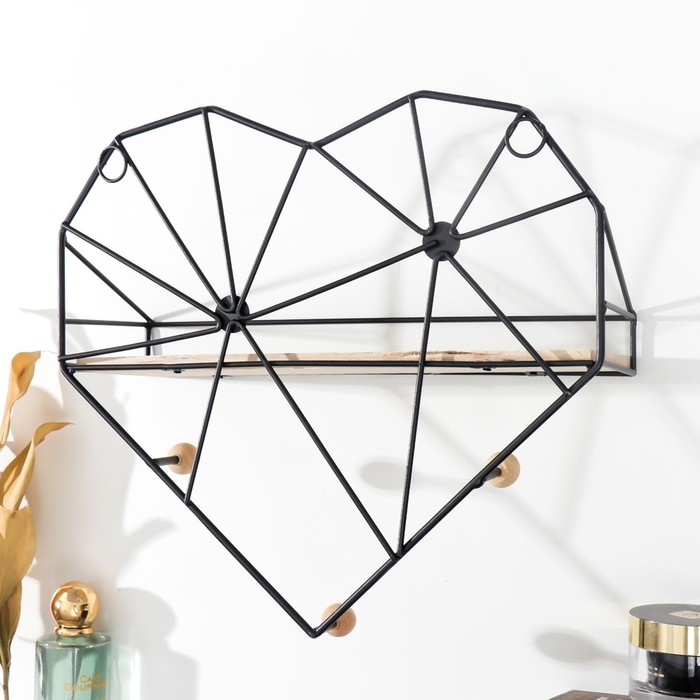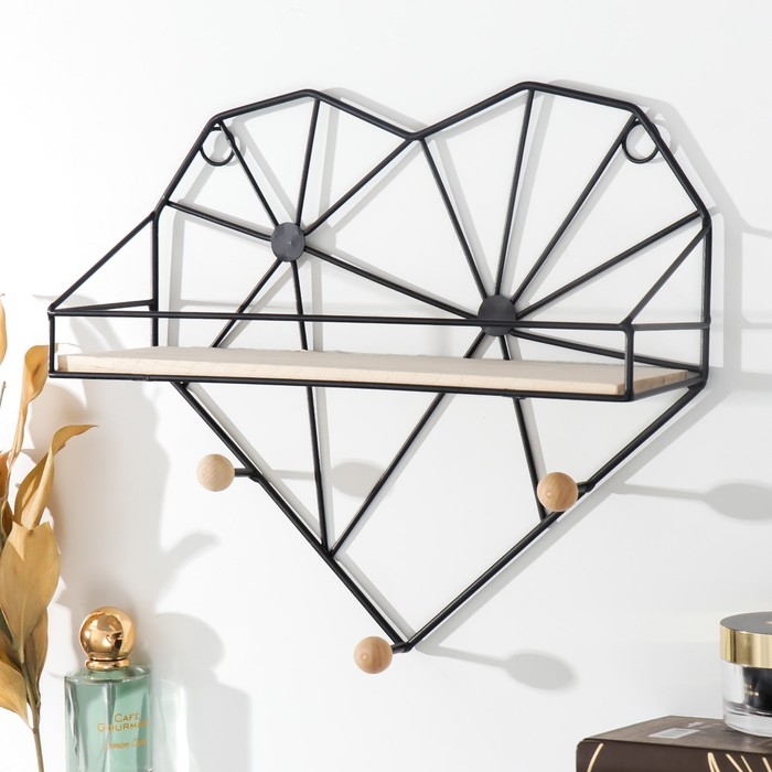 Крючки декоративные металл с полочкой "Лофт. Сердце" чёрный 28,5х9х30 см