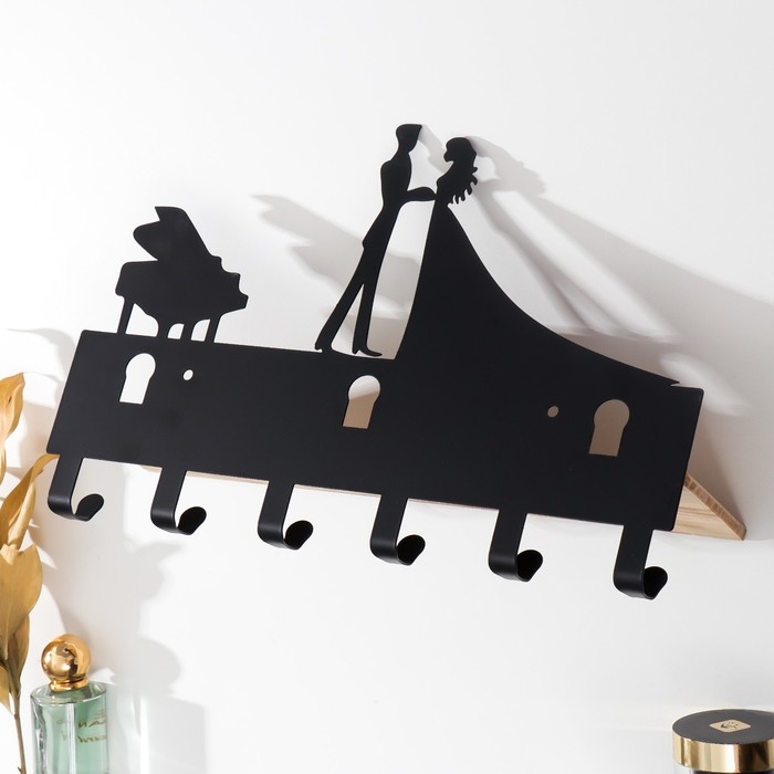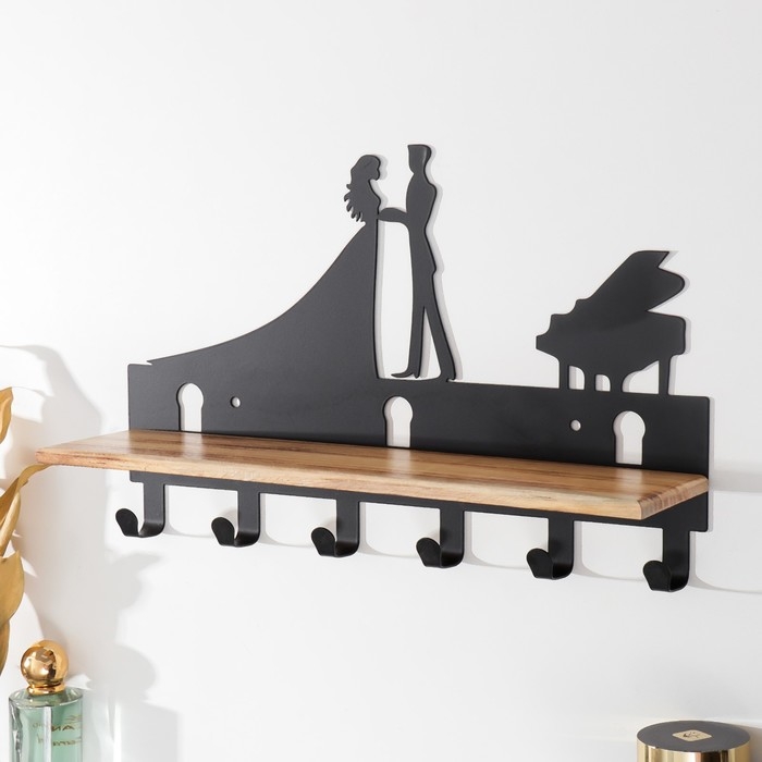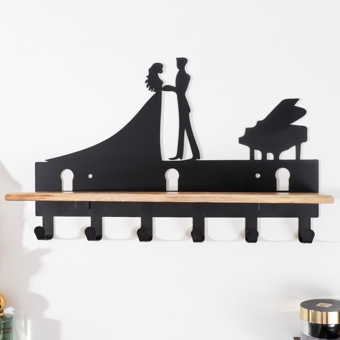 Крючки декоративные металл "Танцующая пара у рояля" чёрный 24х9,5х37 см