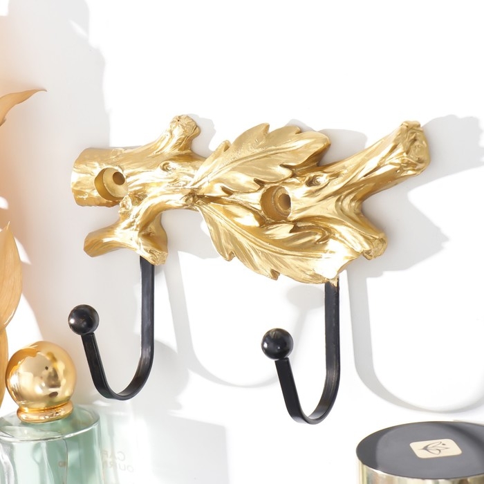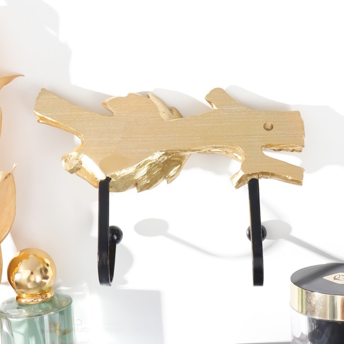Крючки декоративные полистоун "Золотая ветка с листьями" 11,5х4,4х16 см