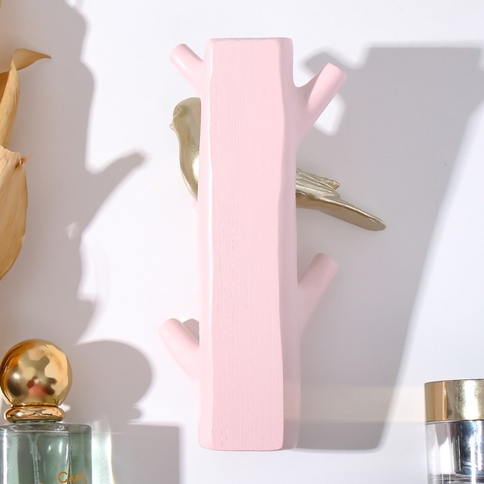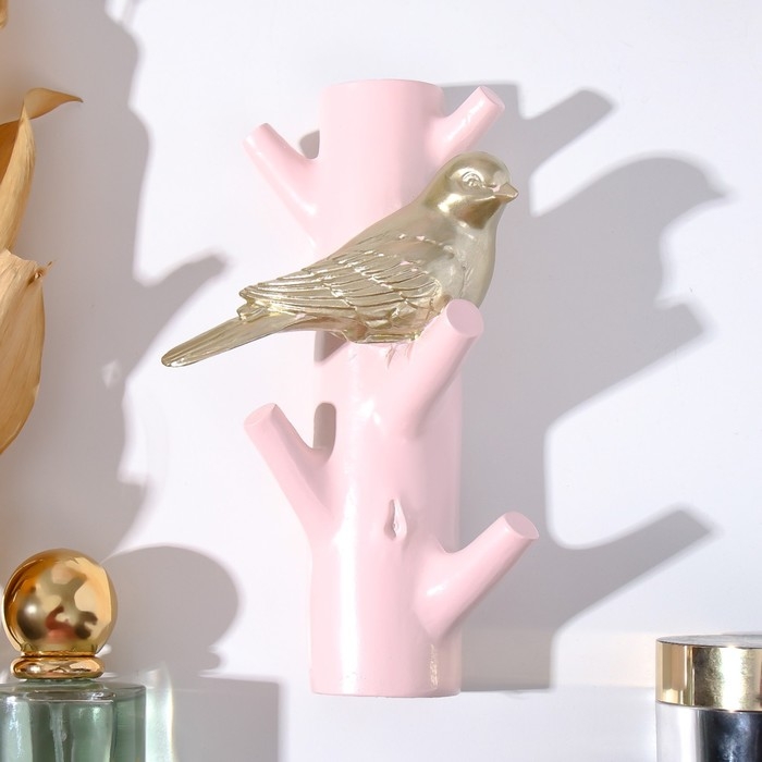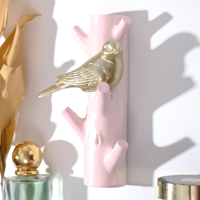 Крючки декоративные полистоун "Золотистая птичка на розовой ветке" 16х5,7х9,7 см