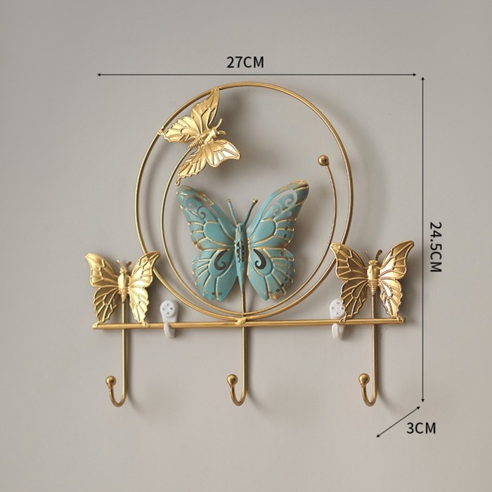 Обладают всеми необходимыми качествами для удобного хранения одежды и аксессуаров. На вешалке можно разместить головные уборы, шарфы или свои любимые предметы. Удобное дополнение, которое поможет вам организовать пространство и добавить характер вашему интерьеру. Каркас изготовлен металла, что делает фурнитуру долговечной и прочной, способной выдерживать значительную нагрузку. Настенная вешалка имеет красивые вставки в виде бабочек. Покрашена в элегантный золотой цвет с добавлением бирюзового.