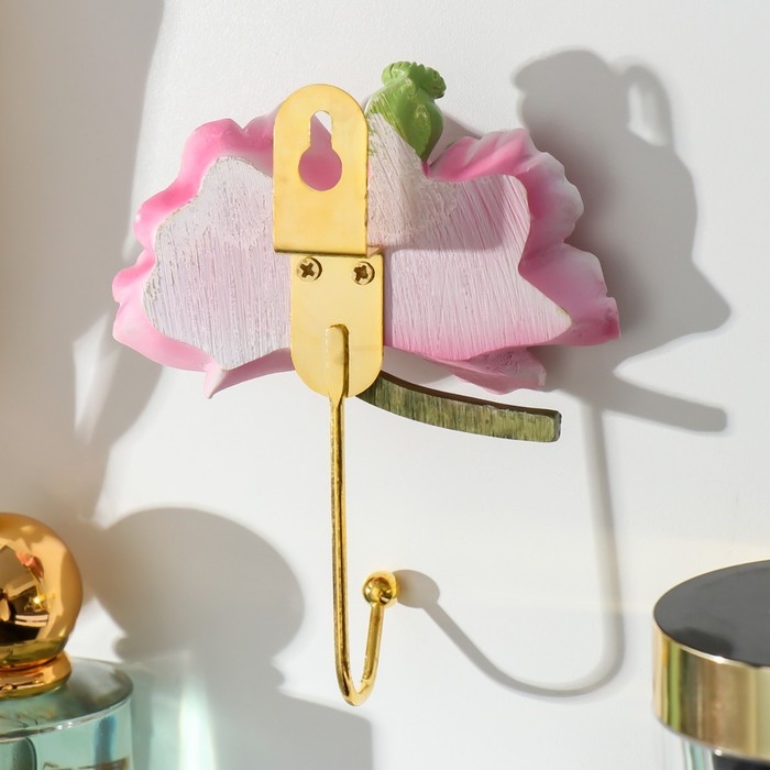 Крючок декоративный полистоун, металл "Розовые маки" 11,3х9 см