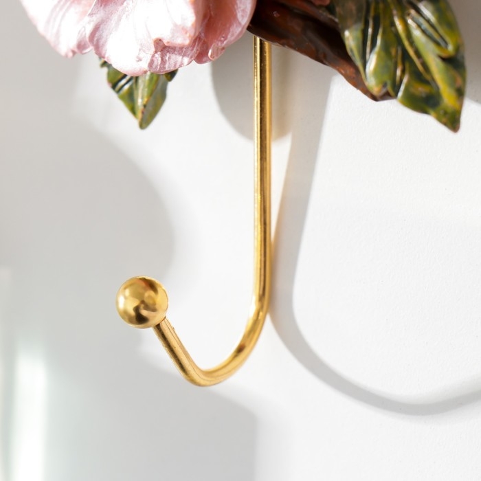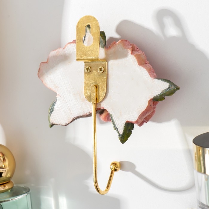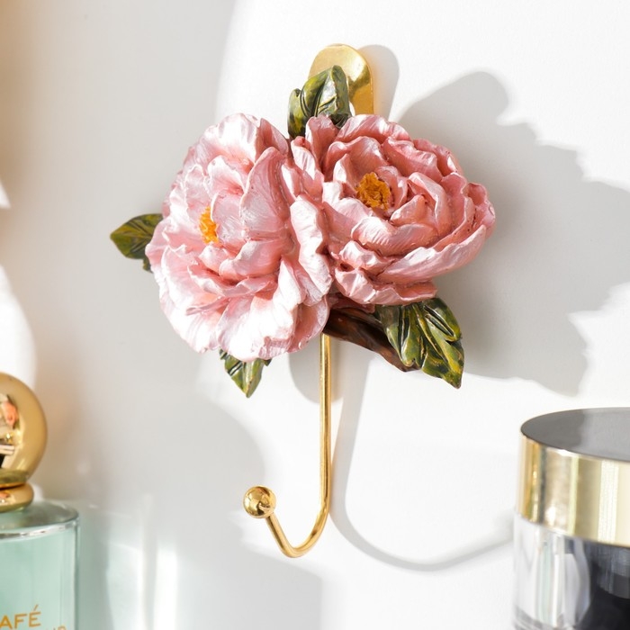 Крючок декоративный полистоун, металл "Розовые пионы" 11х10,3 см