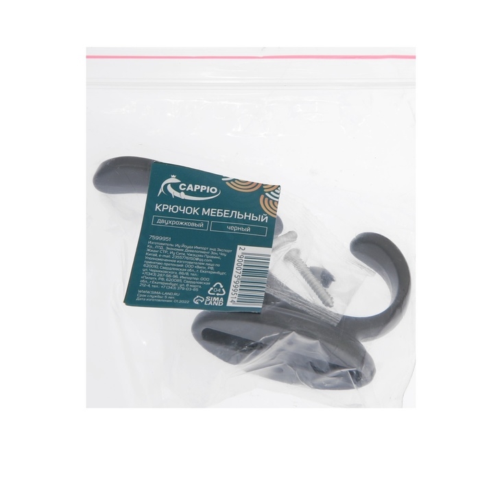 Крючок мебельный CAPPIO FLOW, двухрожковый, черный