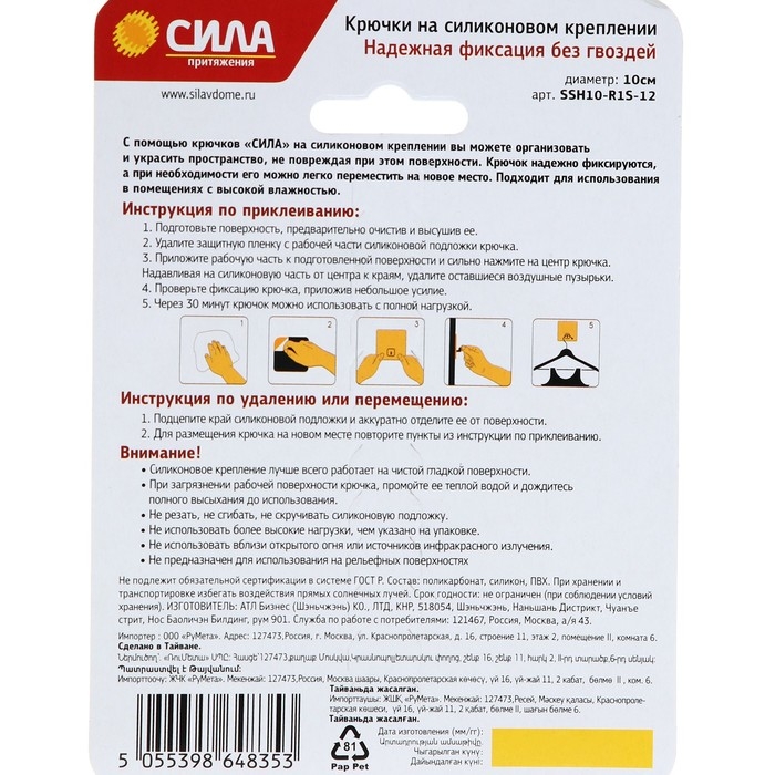 - Многоразовое использование хромированного крючка на силиконовом креплении СИЛА Б0002532;