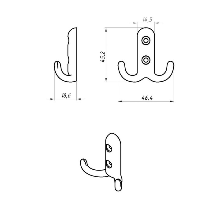 Крючок мебельный ТУНДРА TKD017, двухрожковый, медь