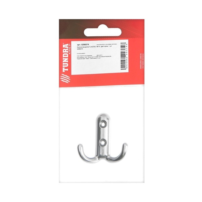 Крючок-вешалка ТУНДРА, №14, цвет хром, 1 шт.