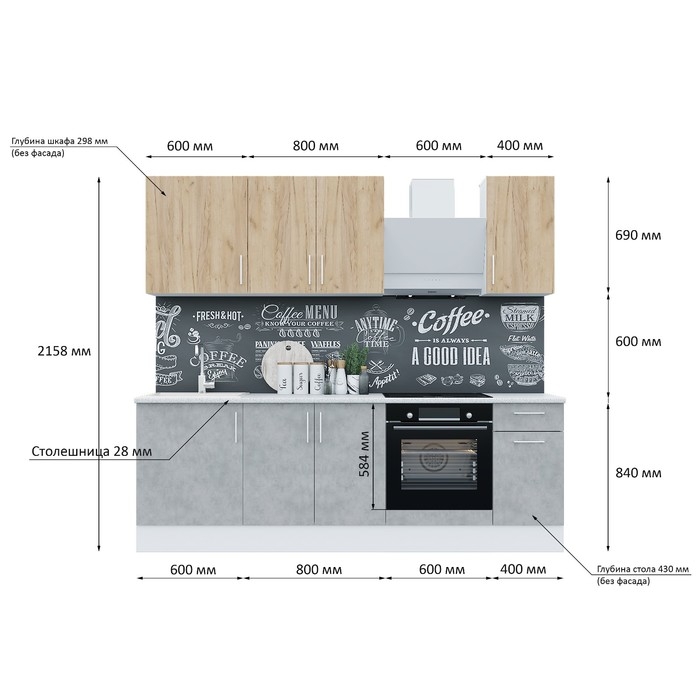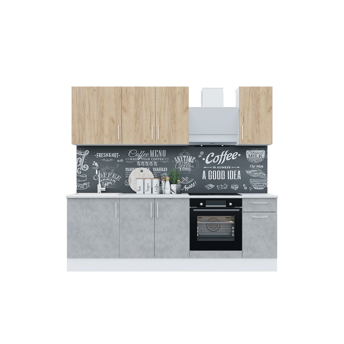 Кухня под встраиваемую технику 2400 Европа, Бетон/Дуб золотой крафт