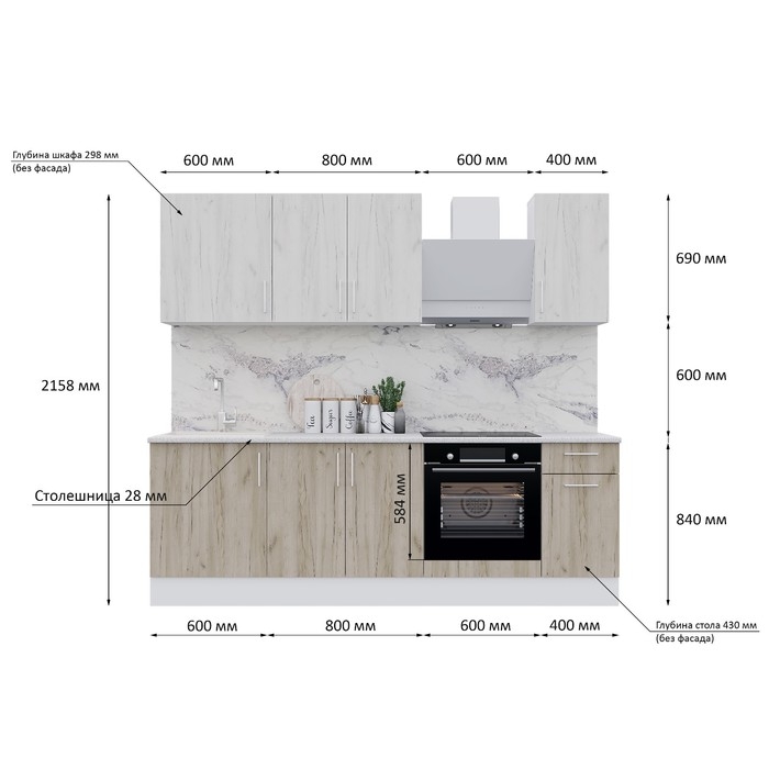 - Высота кухни: 2158 мм.