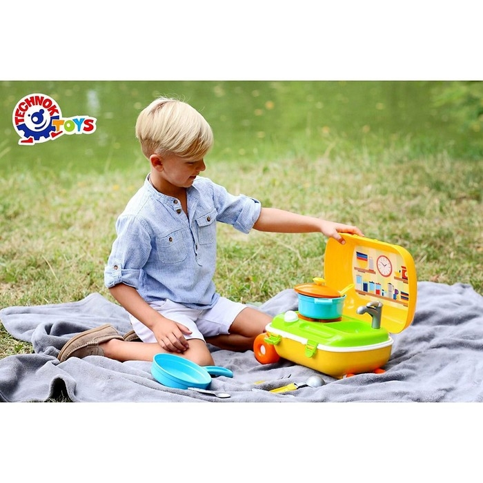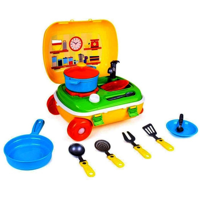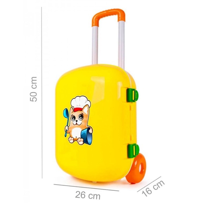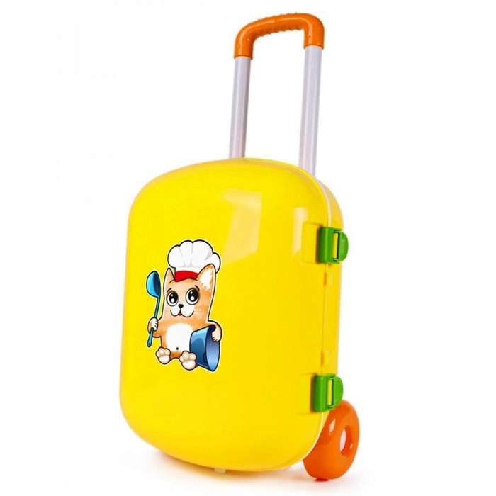 Кухня с набором посуды в жёлтом чемодане