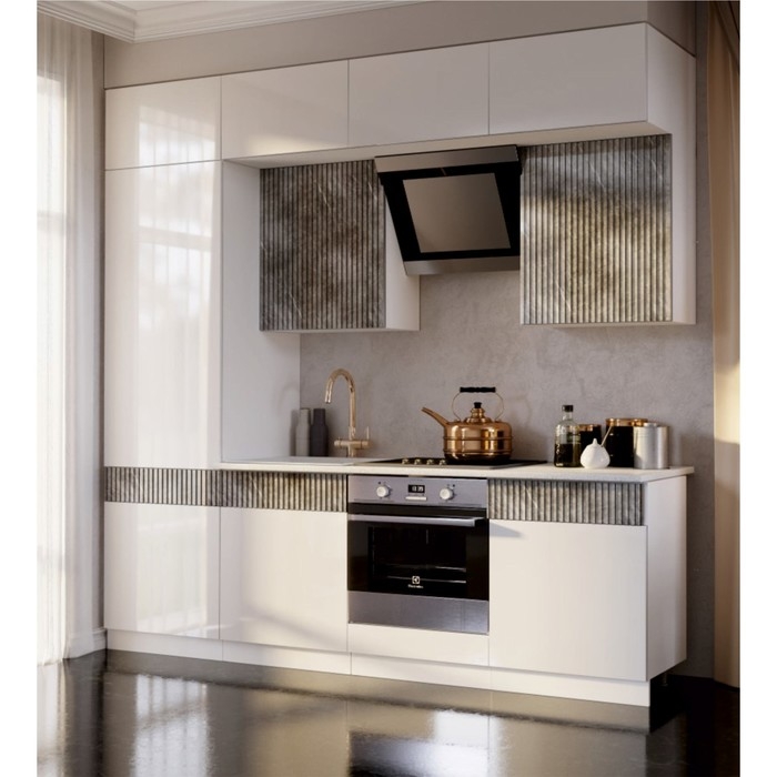 Кухня трехуровневая под потолок 2400 Престиж, Белый глянец/Мрамор глянец