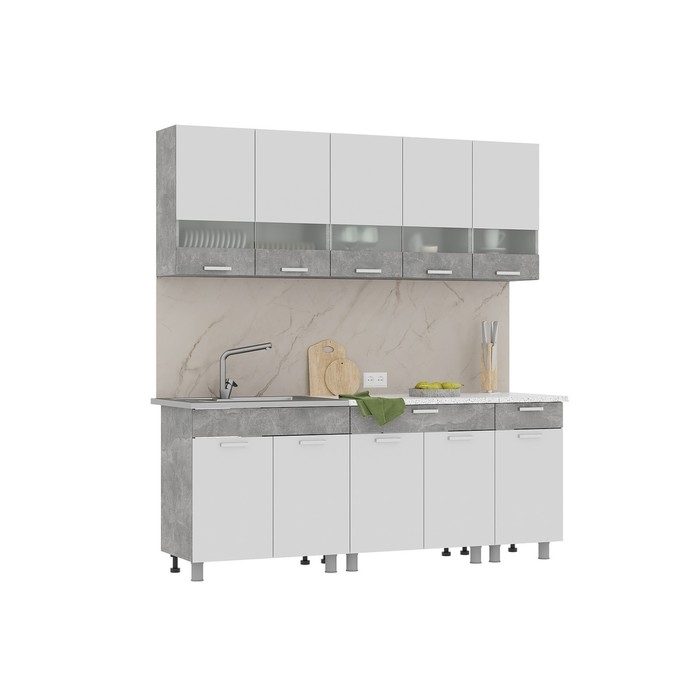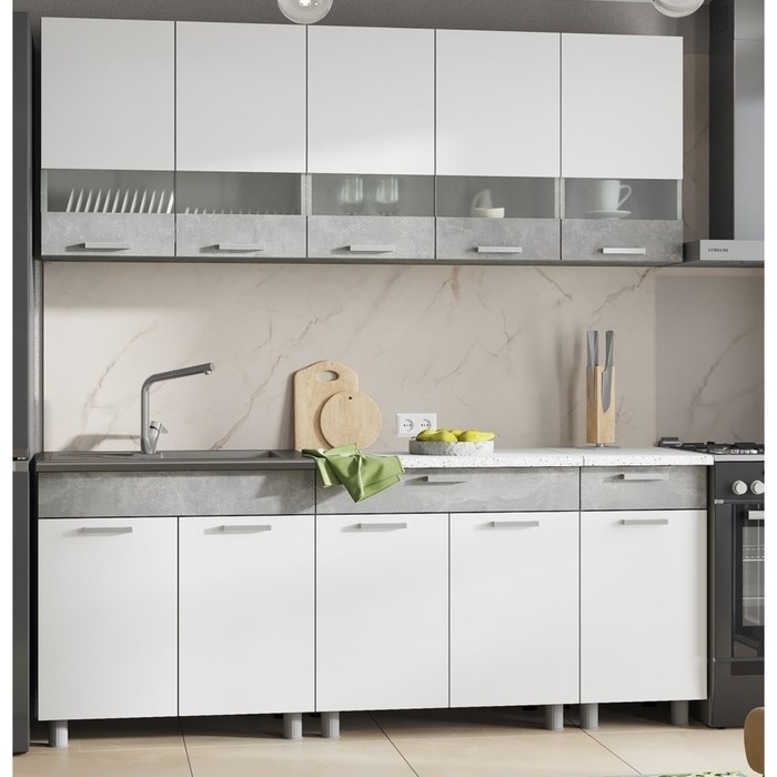 Кухонный гарнитур Денвер 2000, 2000х600х2160, Белый/Ателье светлое