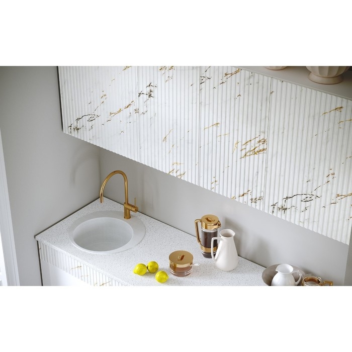 Кухонный гарнитур Престиж 2000, Белый/Мрамор золото МДФ