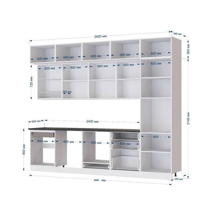Трехуровневый кухонный гарнитур- это отличное решение для вашей кухни. Каждое продуманное место для хранение, позволяет разместить всё самое необходимое. Так же вы можете установить встроенную различную технику.
